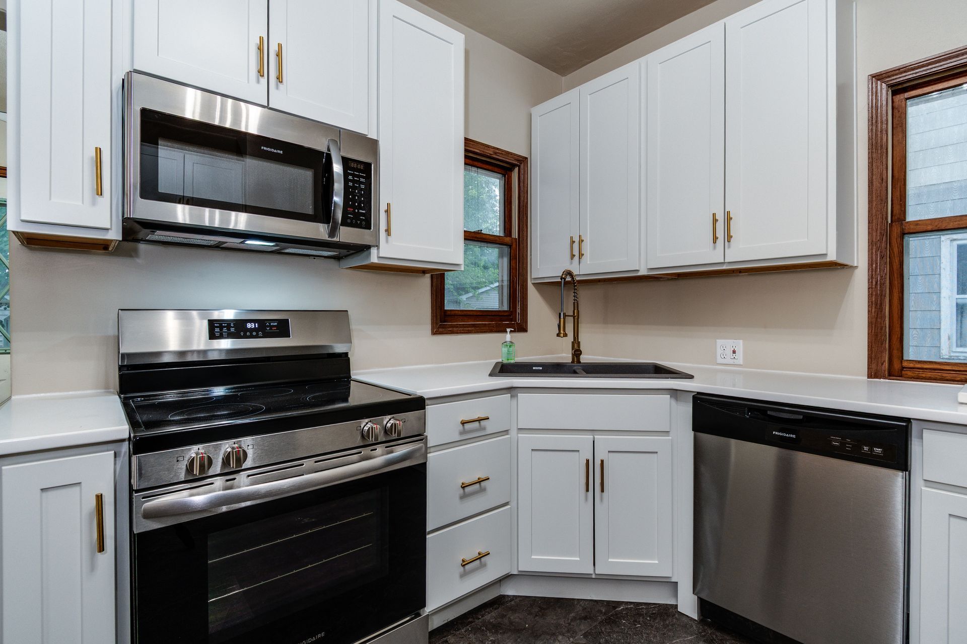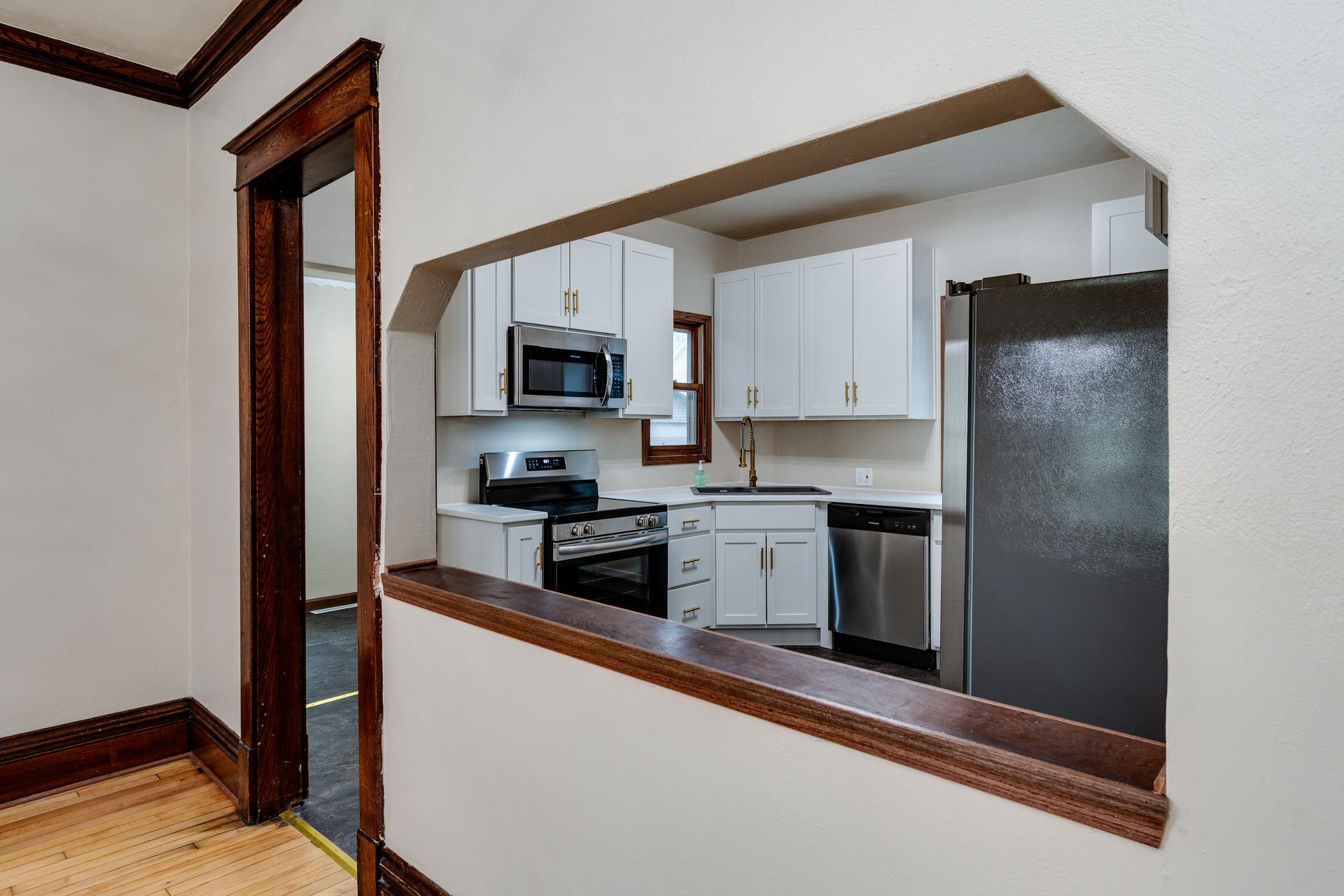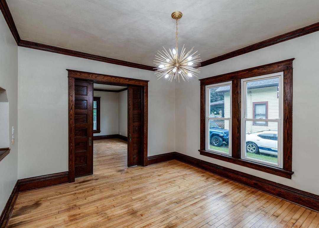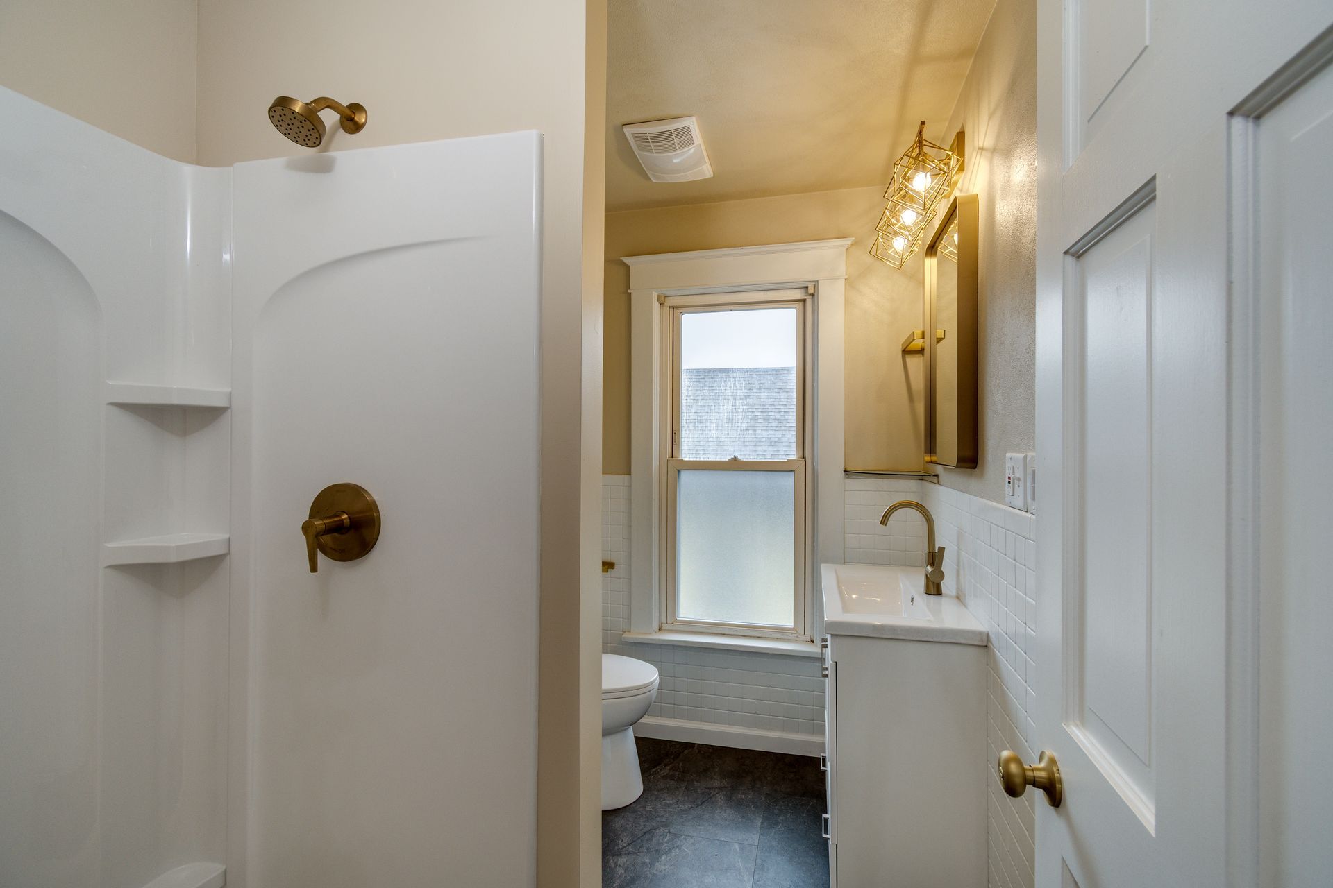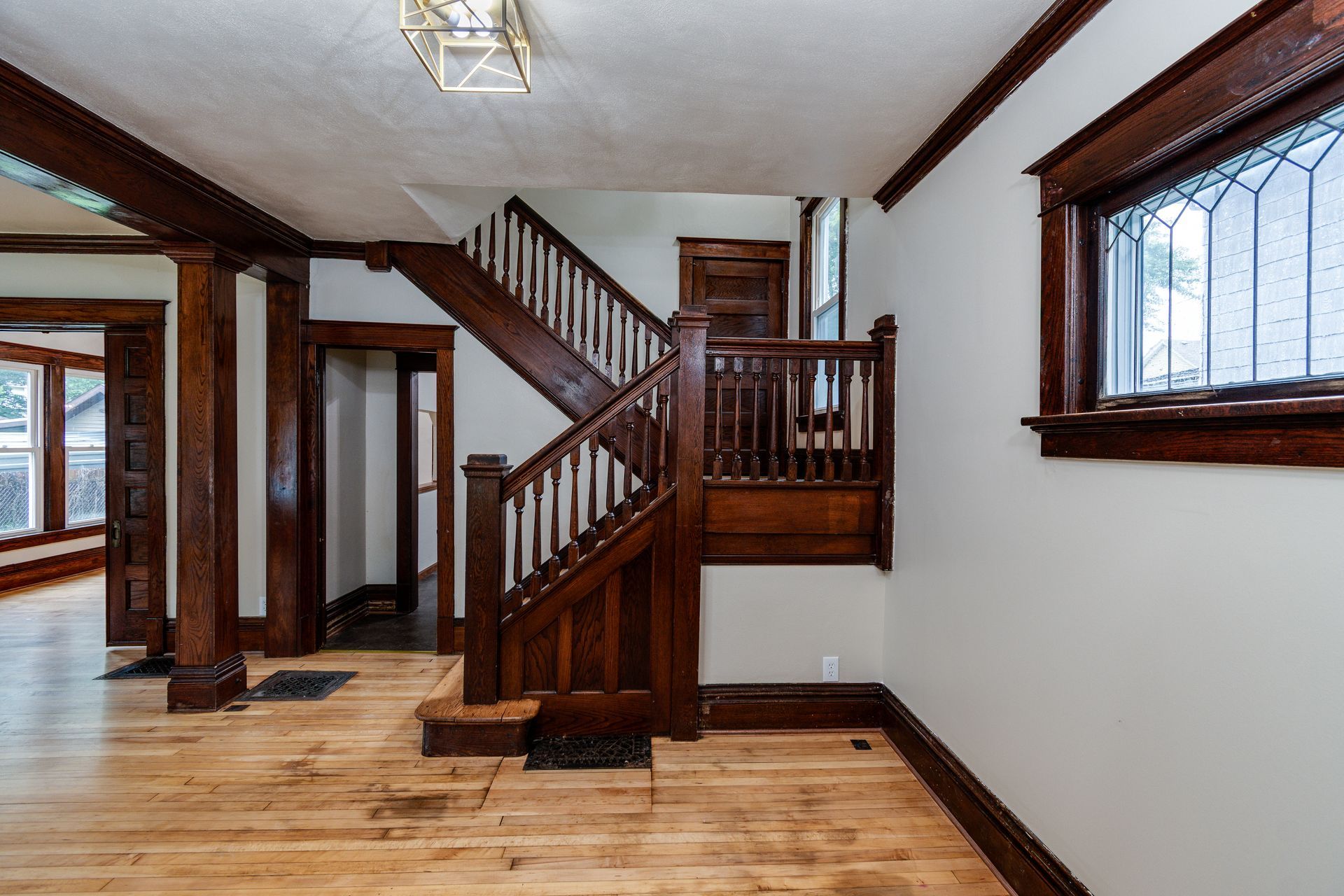 Walking into this house begins with well-kept heavy original doors that open up to show the gorgeous 100+ year old woodwork that still shows its original stain. The freshly restored hardwood floors shine in the daylight pouring in from large windows on every wall. To the right is a staircase going upstarts with handrails that you simply don't get to enjoy in houses made in the last century. To your left is a framed living room with wooden pillars on either side. The living room is divided from the dining room by perhaps the best-preserved hidden feature of this house, two massive sliding solid wood pocket doors. The dining room is split between tall warm windows on one side and a sneak peek to the new kitchen through the serving window on the other. The kitchen features cabinets that span two walls with upper and lower cabinets only split by two more windows showing the greenery in the back yard. The first-floor bathroom was completely redone with a new tub, toilet, vanity, and shelving for storage. Upstairs in this house is now a fresh new view with all of the fresh paint, brass hardware on all doors, and the bold white trim work accenting every wall. Each room features two windows each and a bathroom right in the middle for easy access. The house as a whole speaks of its great age boasting its woodwork everywhere you look. We restored it for the right family who appreciates the quality of old.