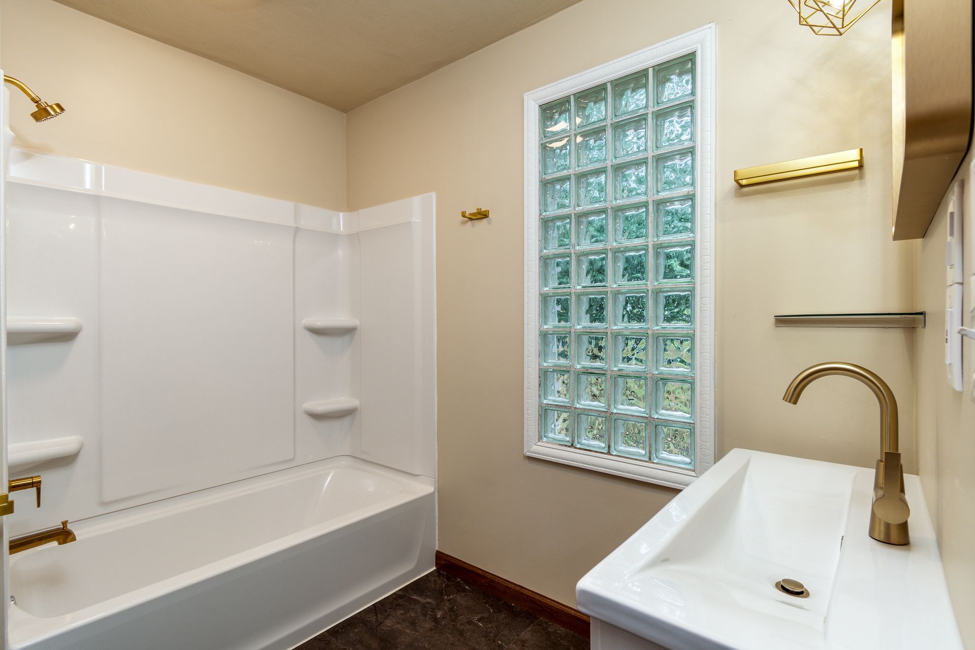 -We used luxury vinyl tiles throughout both bathrooms, kitchen, and the mud room.
