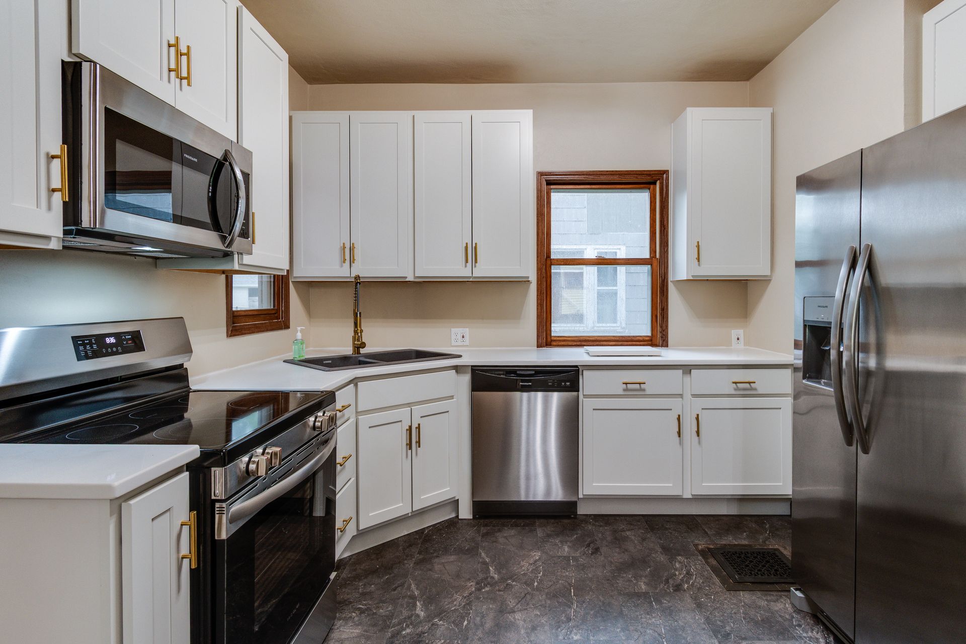 The finished product was a four-bedroom house with two brand new bathrooms and a fully remodeled kitchen ready for any family to appreciate. We tried not to change anything that held the houses original charm while restoring it to a state that was move in ready. We gave freshly refinished floors and repaired every wall to be the perfect fresh slate for the new owners. I am so proud of how the new kitchen brought life to the house without taking away from the history we preserved.
